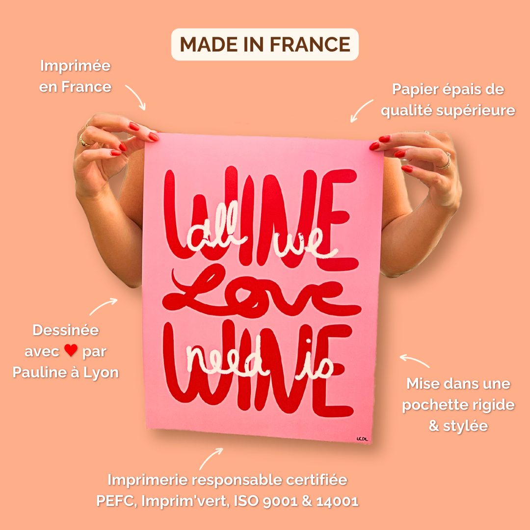 Une affiche pour les amoureux du bon vin et des copains, des bons diners tardifs à refaire le monde autour d'une bonne quille ! Dessinée avec amour par Pauline à Lyon, ceci est une création 100% Le Comptoir de Loulou.